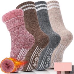Buy HUGSWEET Thermal Socks, Anti Slip Hospital Socks Plush Slipper Grip Socks Women Winter Soft Warm Cozy Socks Fluffy Socks For Christmas 4 Pairs(Multicolor-D1) and other Slipper Socks at