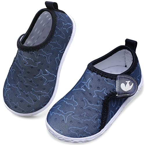 JIASUQI Baby Athletic Sneakers Water Skin Shoes Socks for Beach River Boating Navy Fish 12-18 Months
