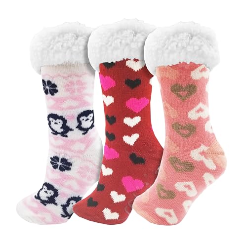 Buy Sherpa Lined Slipper Socks, 3 Pairs for Women, Fluffy Christmas Winter Patterned with Gripper Bottoms, Warm Soft (Hearts) and other Slipper Socks at . Our wide selection is