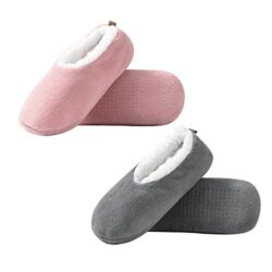 Buy 2 Pairs of Soft Sole Slipper Socks for Women with Grippers Non Slip, Winter Warm Cozy House Bedroom Slippers, Ladies Fuzzy Indoor Home Slippers (Purple,Pink,Grey) and other Slipper