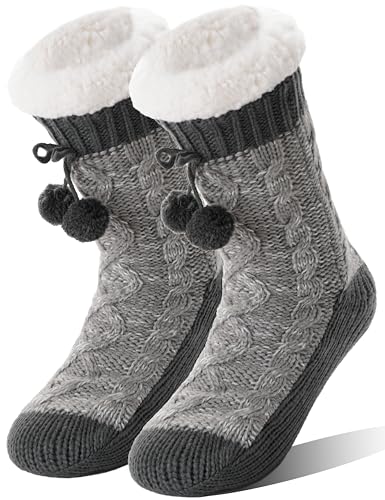 - 【Non Slip Bottom】With the anti slip grips covered on the sole,these grip fuzzy slipper socks can keep safe when womens are walking and running.They are great slipper socks for womens.